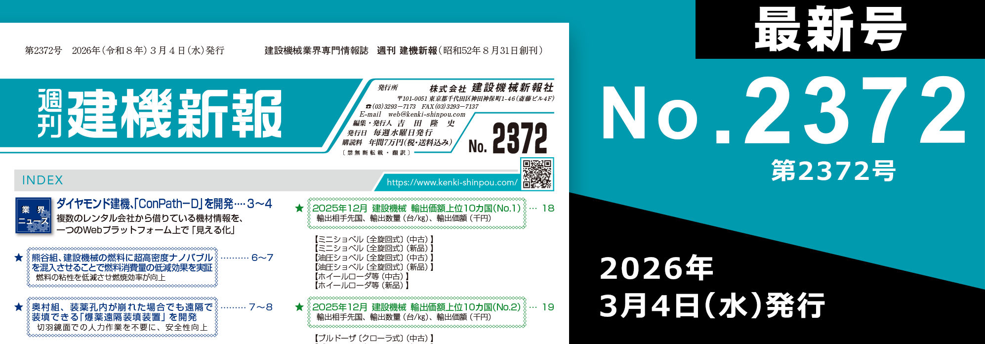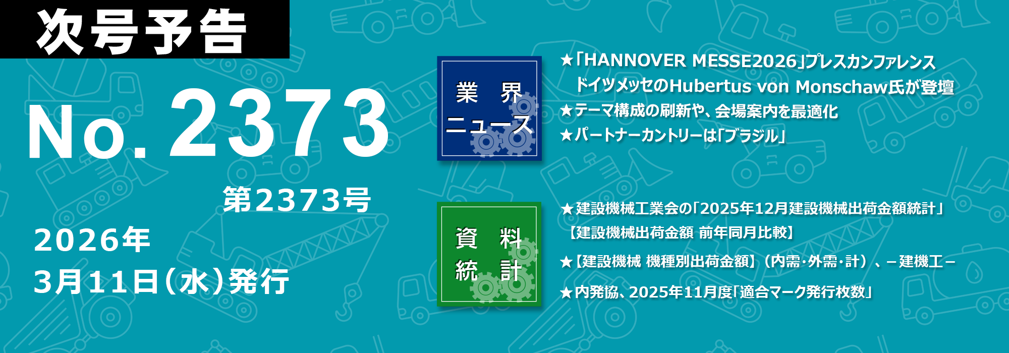 次号予告 第2016号 2018年(平成30年) 12月12日(水)発行